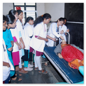 Education Beyond Textbooks: Our classrooms extend beyond traditional lectures, utilizing models, charts, instruments, and specimens to offer a comprehensive understanding of structural and functional aspects, diagnostic techniques, and therapeutic approaches in Shalakyatantra.